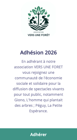 Fondée en 2024, l’association VERS UNE FORET sous statut loi 1901, est une maison de production qui a pour objet selon l’article 2 « de créer du sens autour de la plantation d’arbres. Pour favoriser la plantation, l’association fait jouer et connaître le spectacle sous toutes ses formes, notamment « L’homme qui plantait des arbres ». D’autres spectacles pourront voir le jour. »